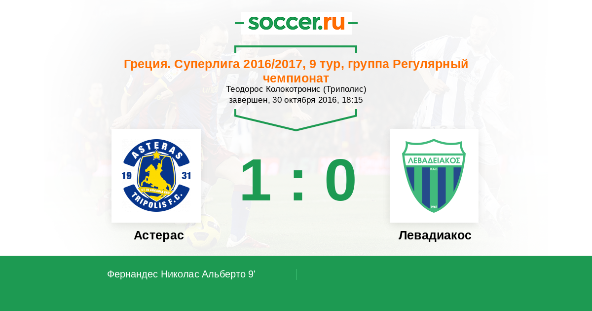 Астерас - Левадиакос: обзор матча 30 октября 2016