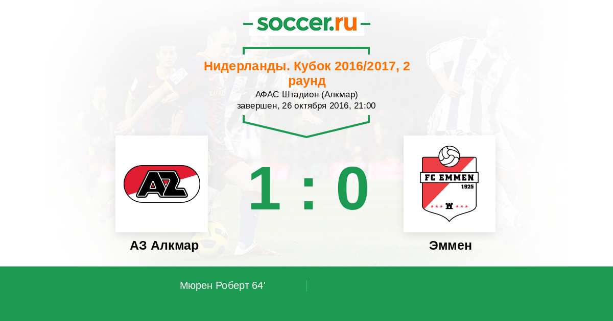 АЗ Алкмар - Эммен: обзор матча 26 октября 2016