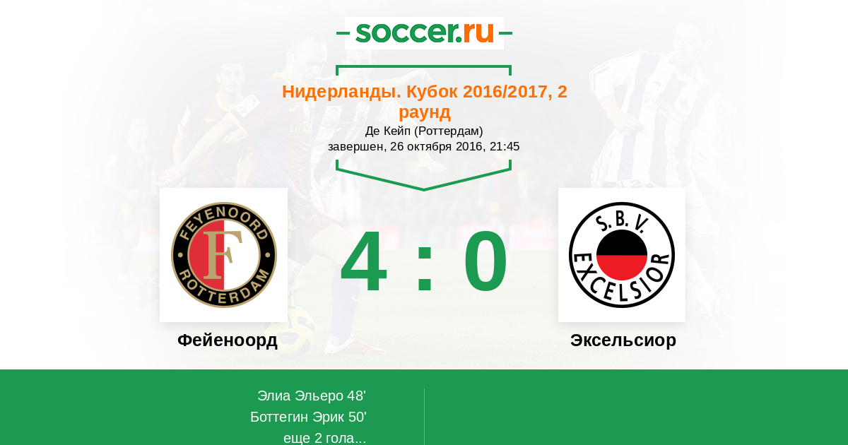 Фейеноорд - Эксельсиор: обзор матча 26 октября 2016