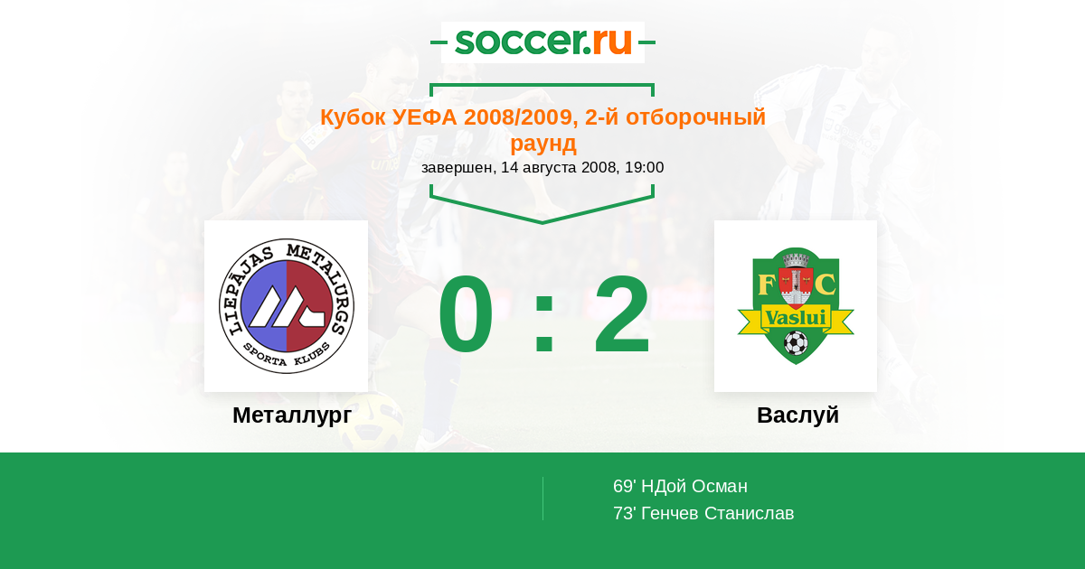 Металлург - Васлуй: обзор матча 14 августа 2008