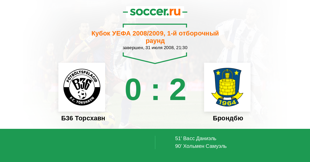 Б36 Торсхавн - Брондбю: обзор матча 31 июля 2008