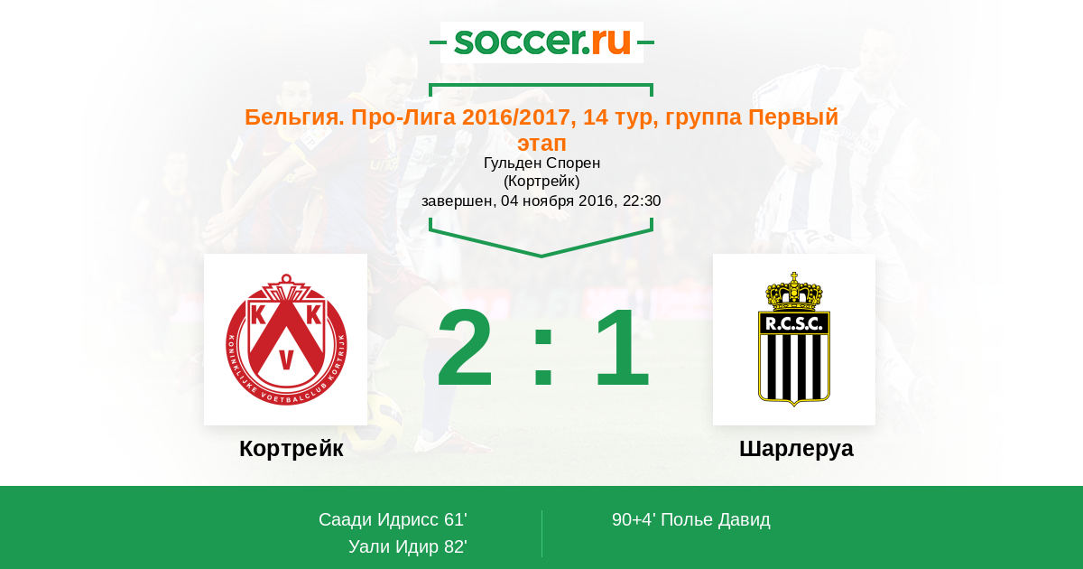 Кортрейк - Шарлеруа: обзор матча 4 ноября 2016
