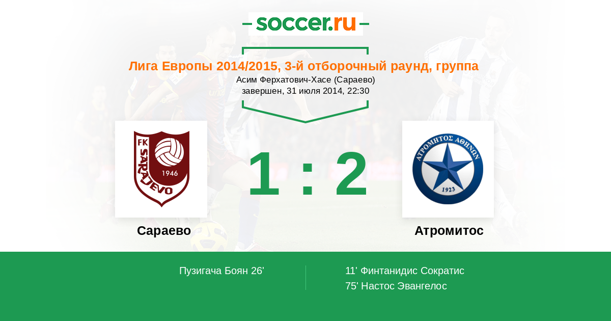 Сараево - Атромитос: обзор матча 31 июля 2014