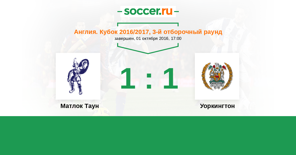 Матлок Таун - Уоркингтон: обзор матча 1 октября 2016