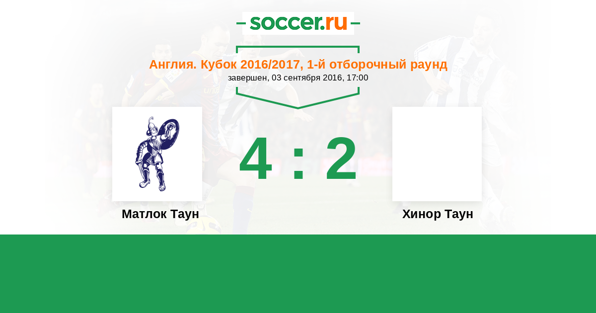 Матлок Таун - Хинор Таун: обзор матча 3 сентября 2016