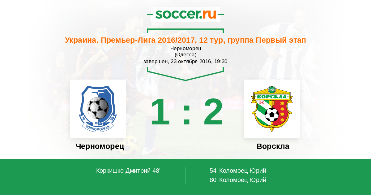 Черноморец - Ворскла: обзор матча 23 октября 2016