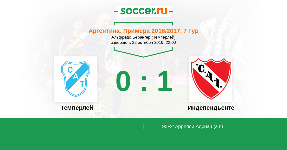 Темперлей - Индепендьенте: обзор матча 22 октября 2016