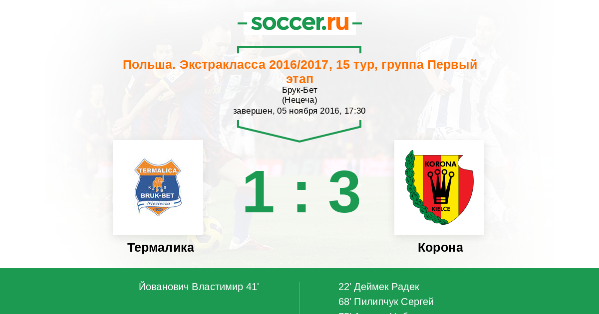 Термалика - Корона: обзор матча 5 ноября 2016