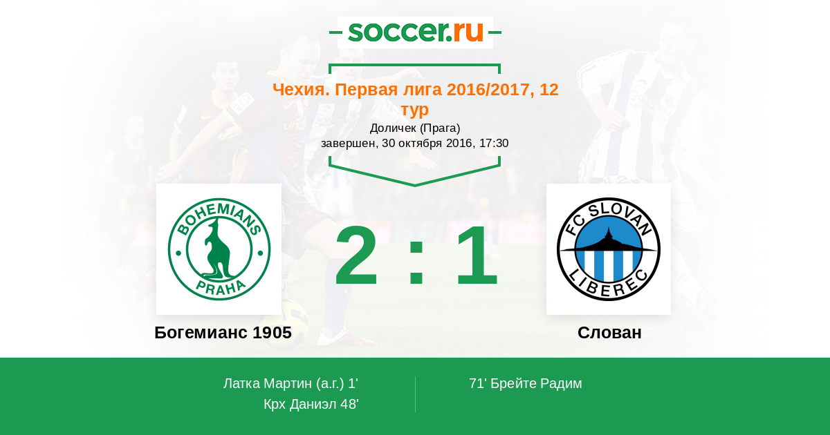 Богемианс 1905 - Слован: обзор матча 30 октября 2016