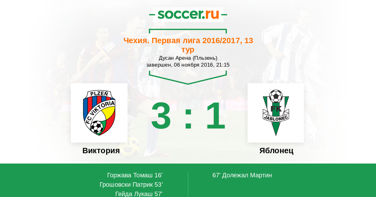 Виктория - Яблонец: обзор матча 6 ноября 2016