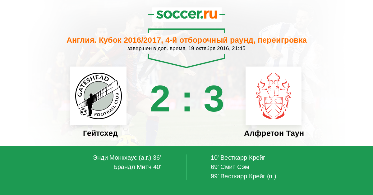 Гейтсхед - Алфретон Таун: обзор матча 19 октября 2016