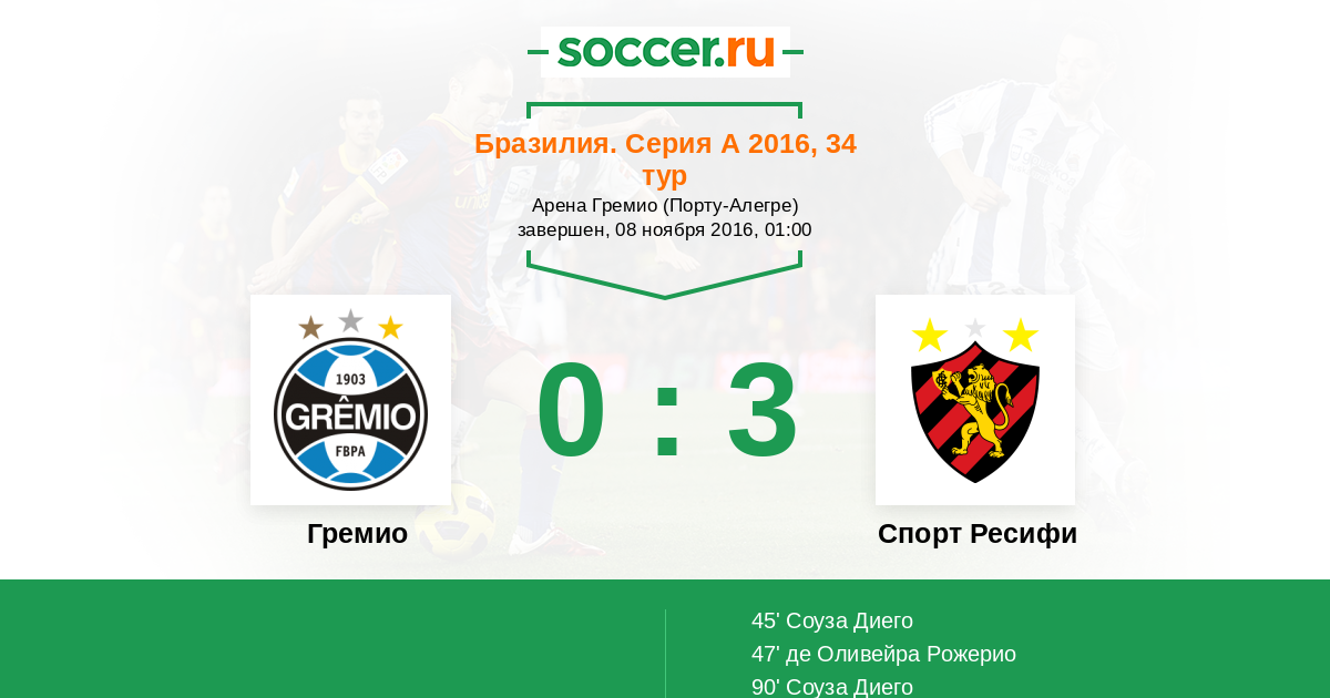 Гремио - Спорт Ресифи: обзор матча 8 ноября 2016