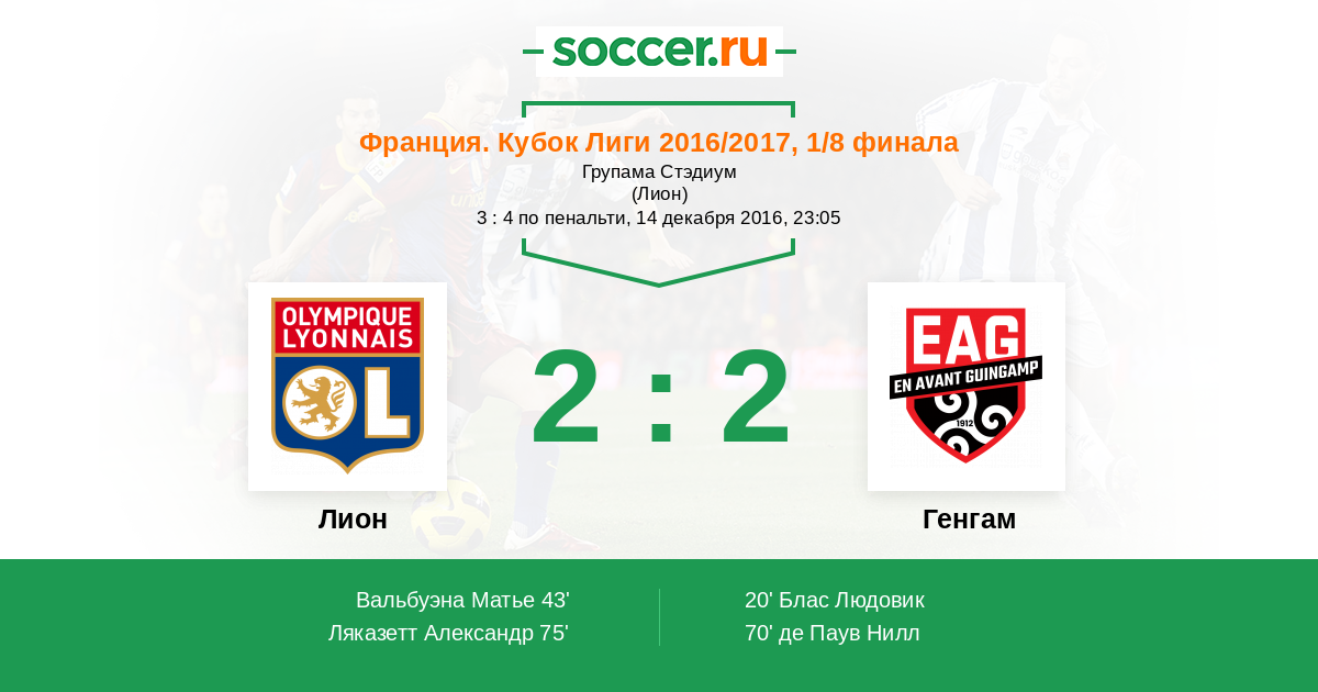 Франция. Кубок Лиги 2016/2017, 1/8 финала