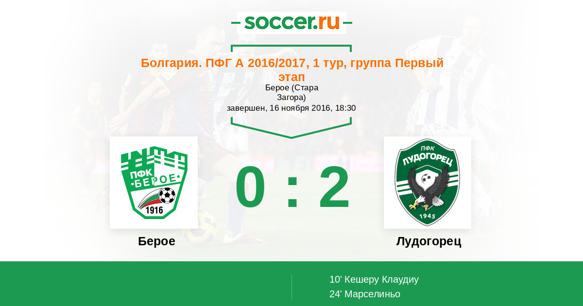 Берое - Лудогорец: обзор матча 16 ноября 2016