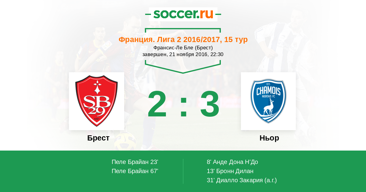 Брест - Ньор: обзор матча 21 ноября 2016