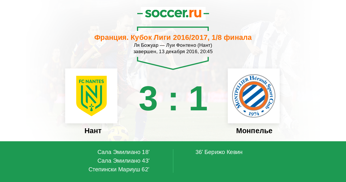 Нант - Монпелье: обзор матча 13 декабря 2016