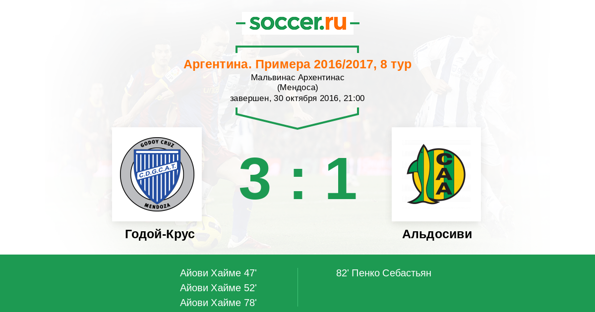 Годой-Крус - Альдосиви: обзор матча 30 октября 2016
