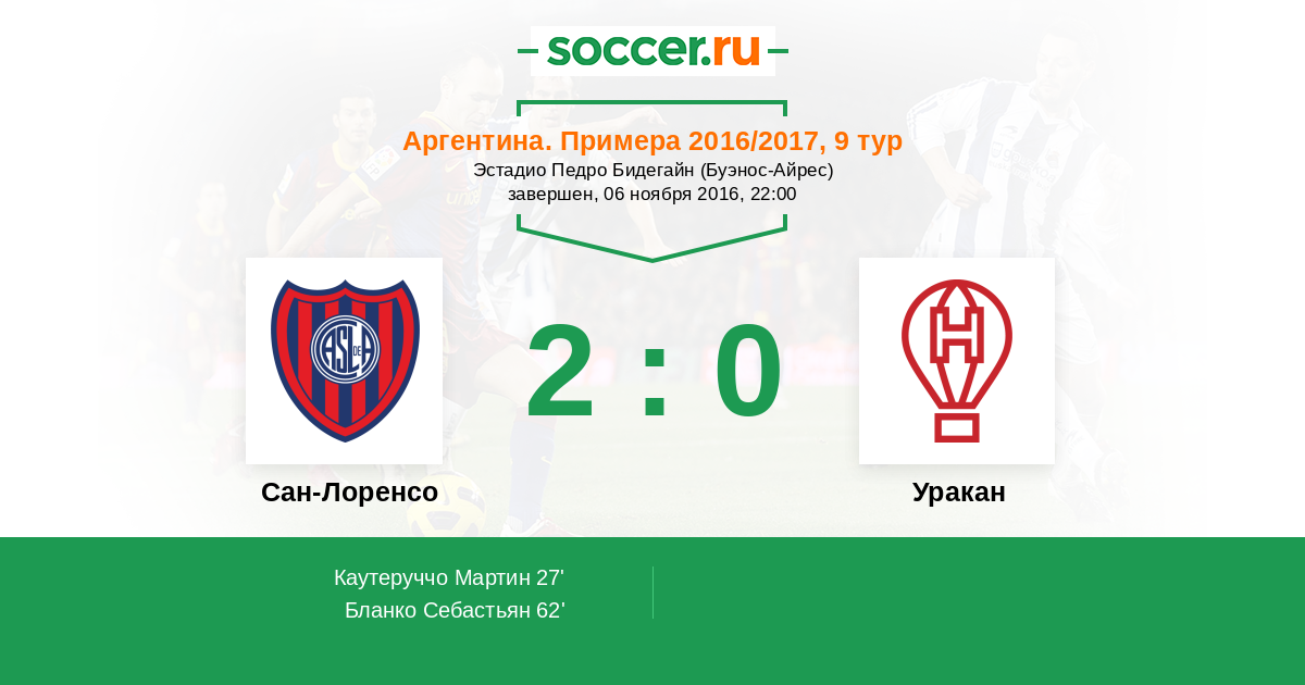 Сан-Лоренсо - Уракан: обзор матча 6 ноября 2016