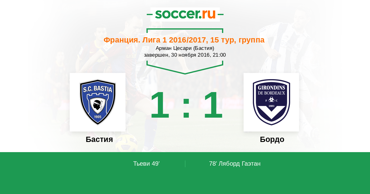 Бастия - Бордо: обзор матча 30 ноября 2016