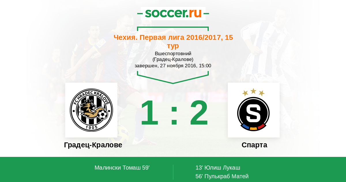 Градец-Кралове - Спарта: обзор матча 27 ноября 2016