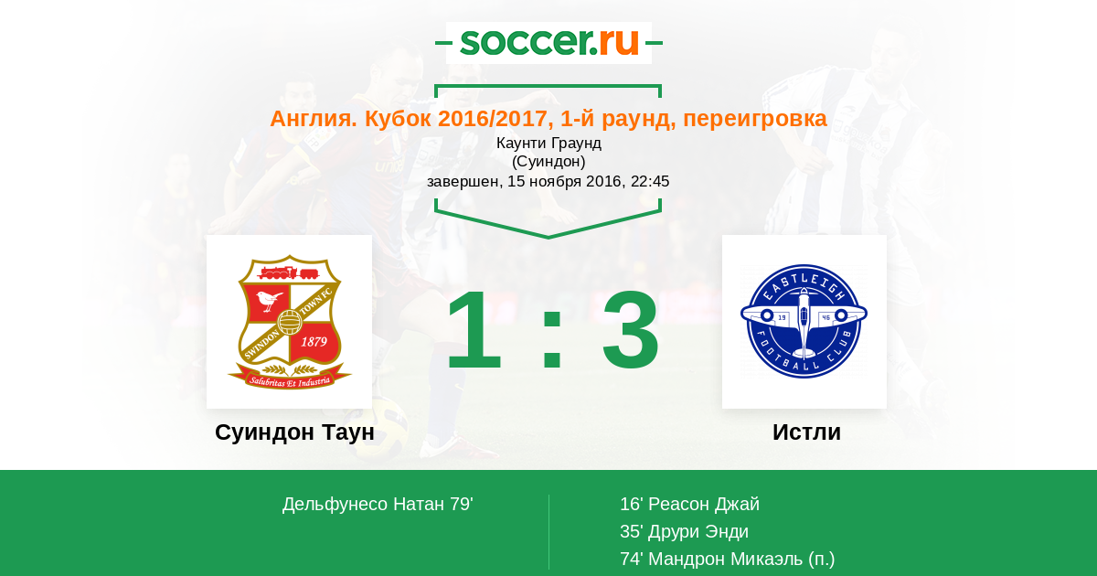 Суиндон Таун - Истли: обзор матча 15 ноября 2016