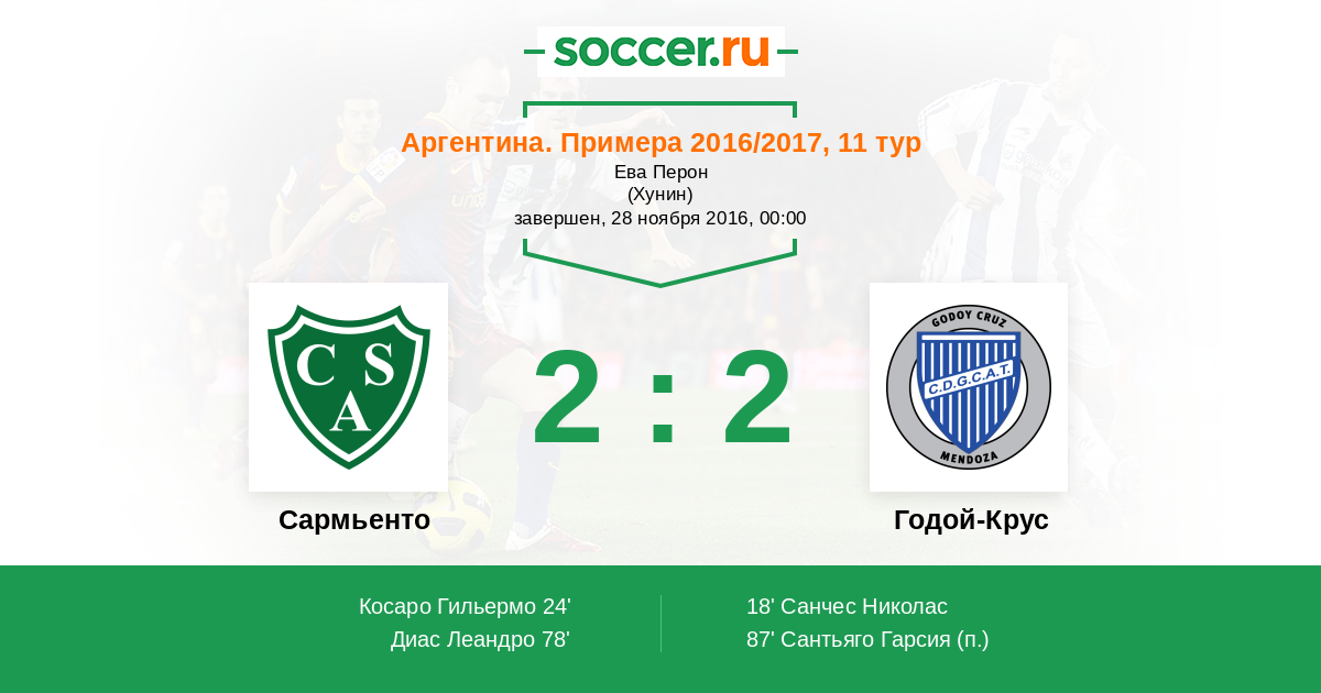 Сармьенто - Годой-Крус: обзор матча 28 ноября 2016