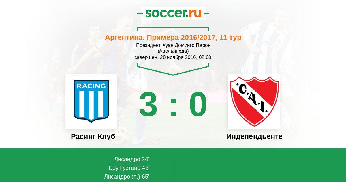 Расинг Клуб - Индепендьенте: обзор матча 28 ноября 2016