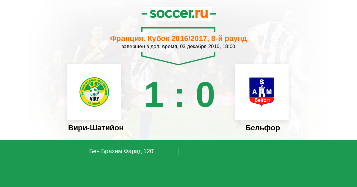 Вири-Шатийон - Бельфор: обзор матча 3 декабря 2016