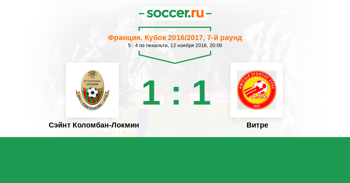 Сэйнт Коломбан-Локмин - Витре: обзор матча 12 ноября 2016