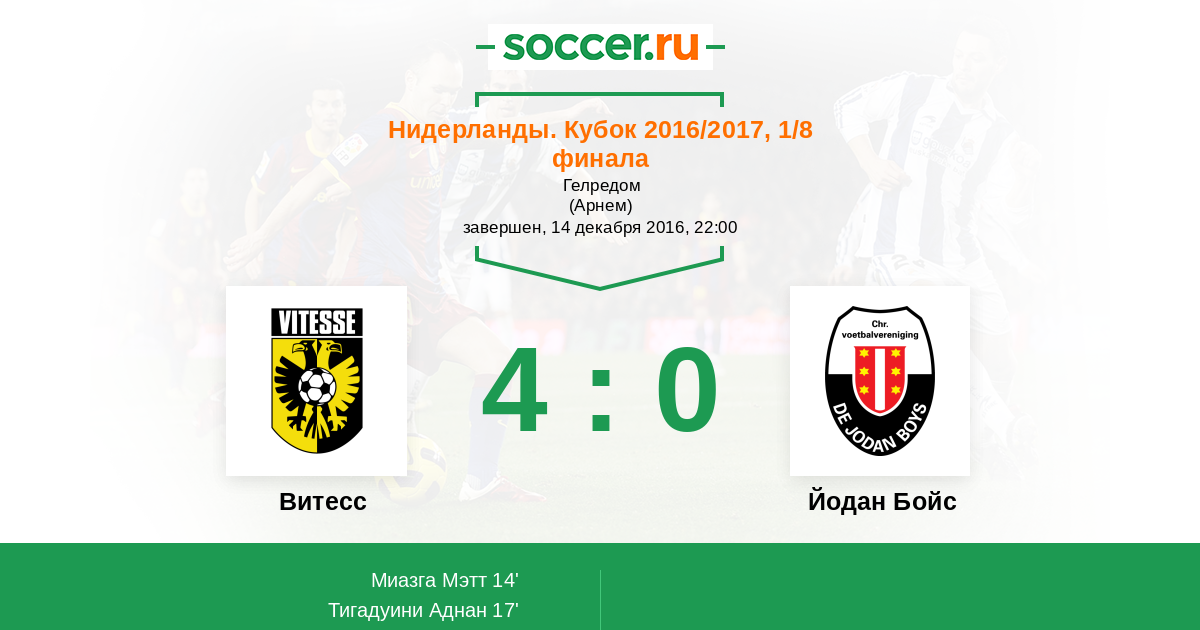 Витесс - Йодан Бойс: обзор матча 14 декабря 2016