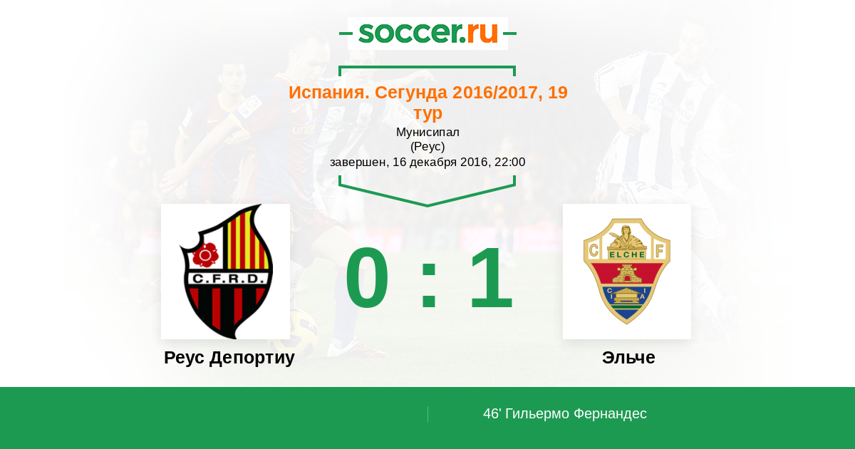 Реус Депортиу - Эльче: обзор матча 16 декабря 2016