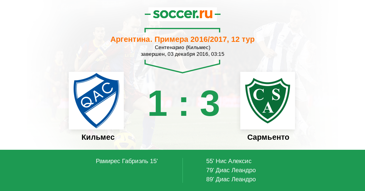 Кильмес - Сармьенто: обзор матча 3 декабря 2016