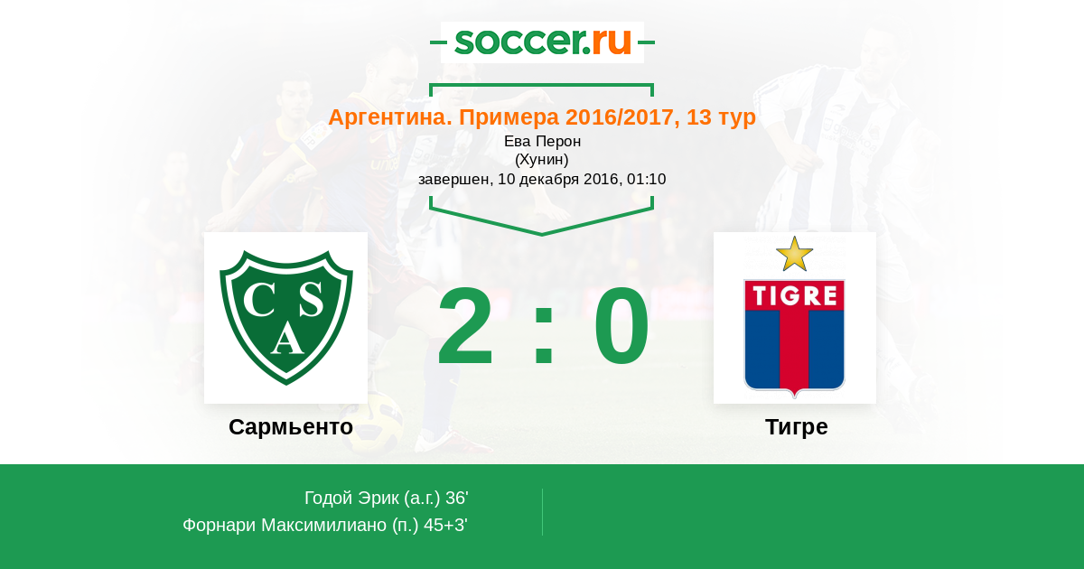 Сармьенто - Тигре: обзор матча 10 декабря 2016