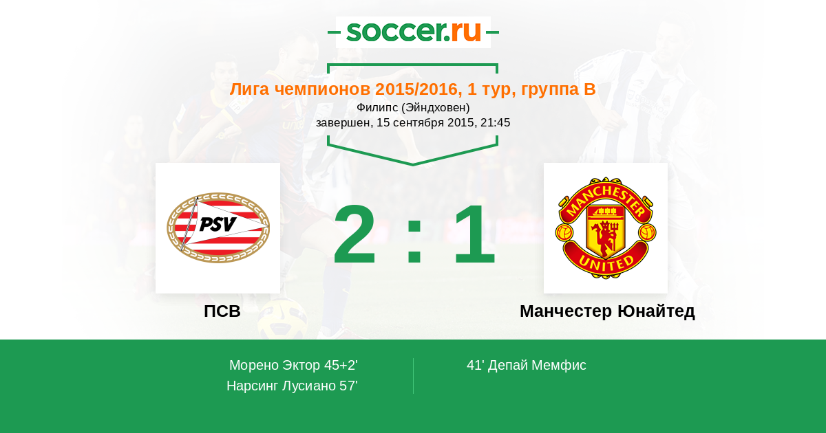 ПСВ - Манчестер Юнайтед: обзор матча 15 сентября 2015