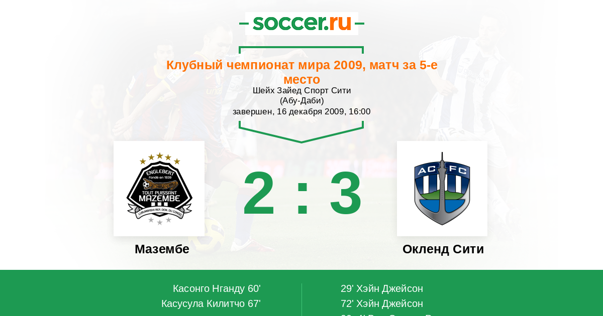 Мазембе - Окленд Сити: обзор матча 16 декабря 2009