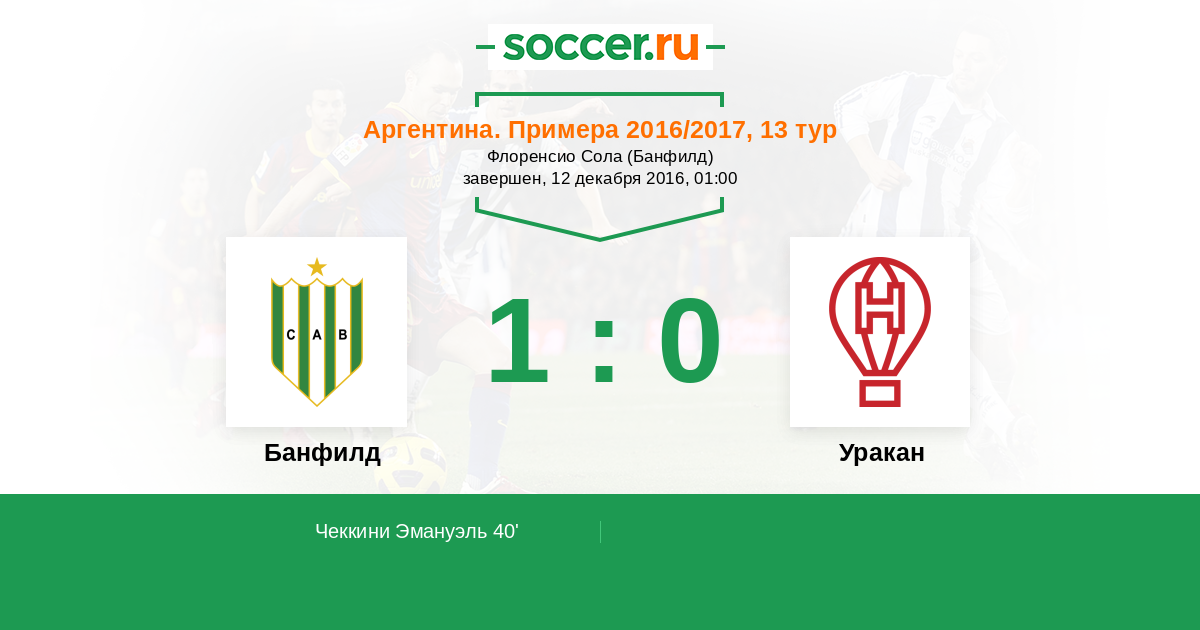Банфилд - Уракан: обзор матча 12 декабря 2016