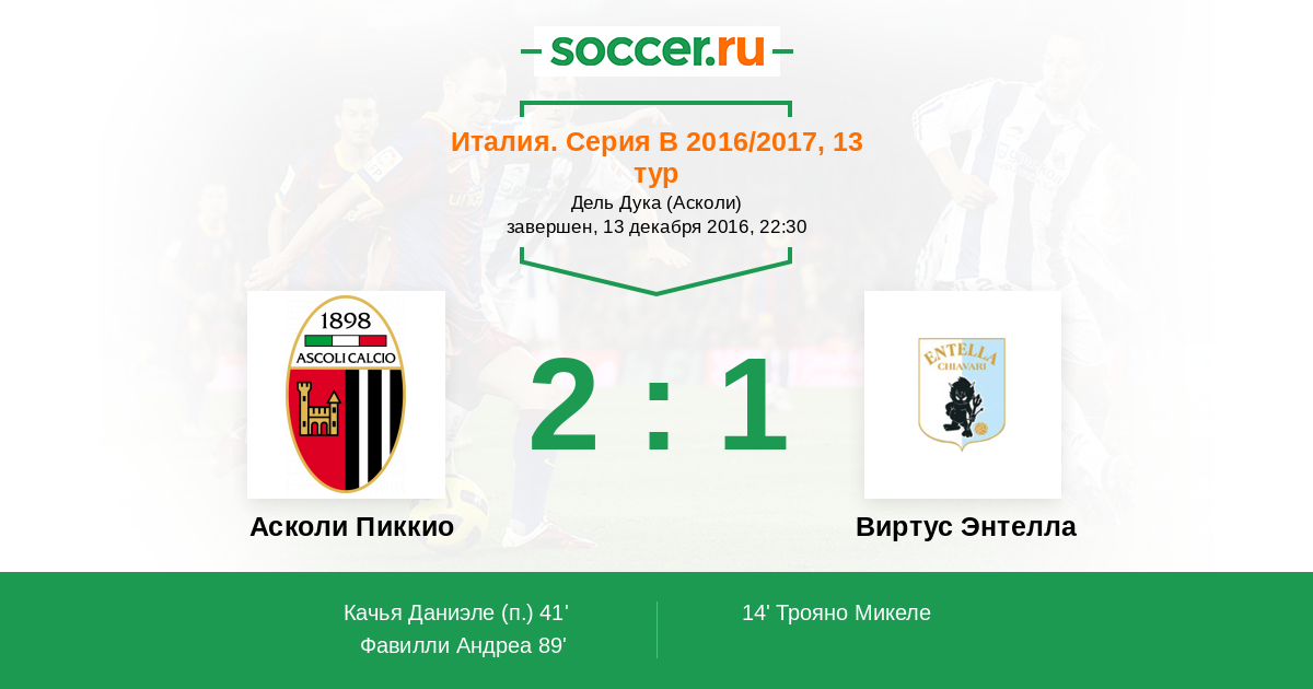 Асколи Пиккио - Виртус Энтелла: обзор матча 13 декабря 2016