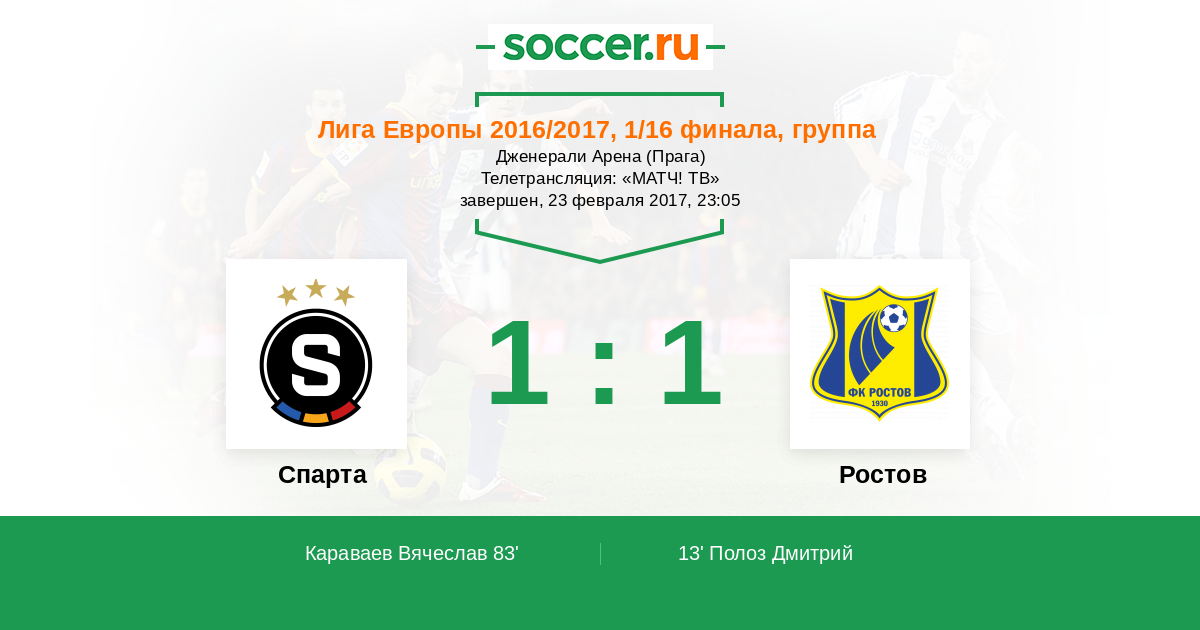 Подопечные Ивана Данильнца несмотря на удаление в составе "красных" не смогли удержать победного счета! Гол футболиста молодежной сборной России лишил российскую команду гостевой победы в матче против "Спарты"! Уже завтра "Ростов" узнает своего соперника в следующей стадии Лиги Европы. Предлагаем выбрать лучших игроков в составах команд, комментировал для вас Дмитрий Отмахов. До новых встреч на soccer.ru.