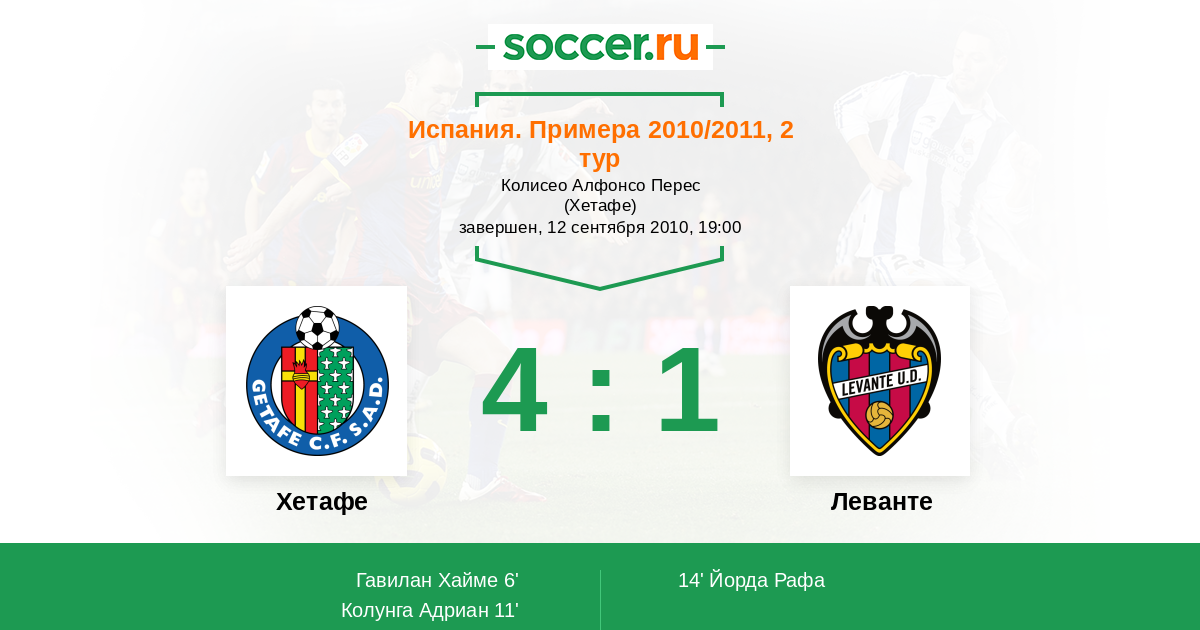 Хетафе - Леванте: обзор матча 12 сентября 2010