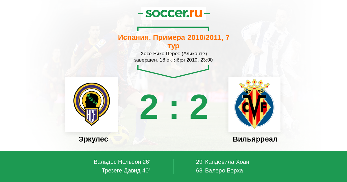 Эркулес - Вильярреал: обзор матча 18 октября 2010