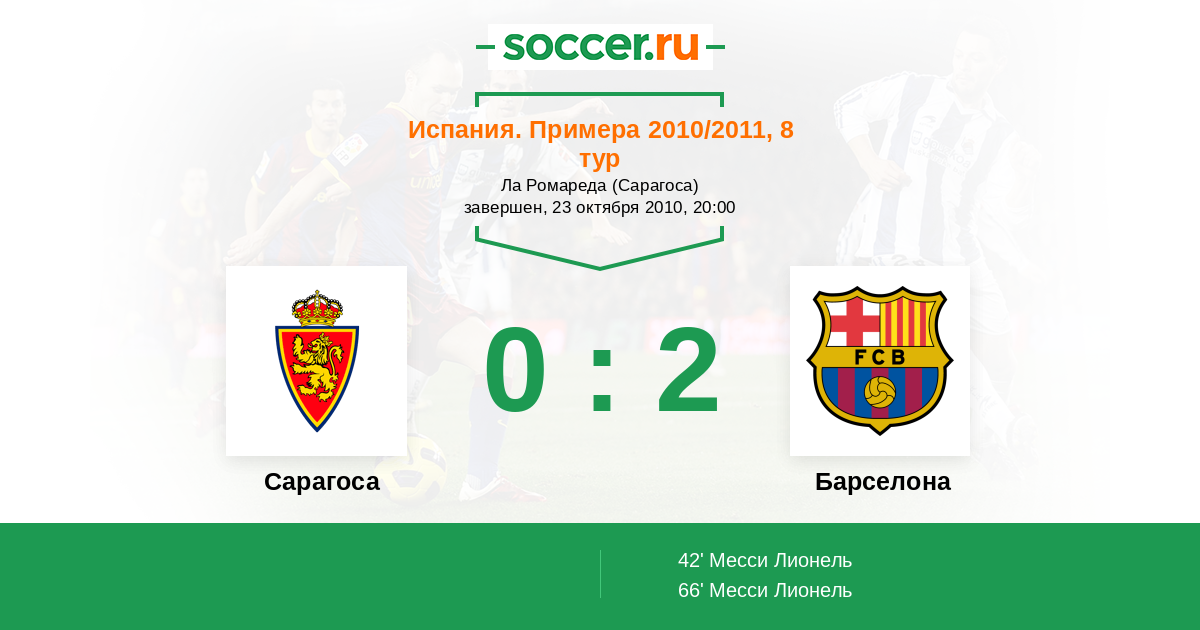 Сарагоса - Барселона: обзор матча 23 октября 2010