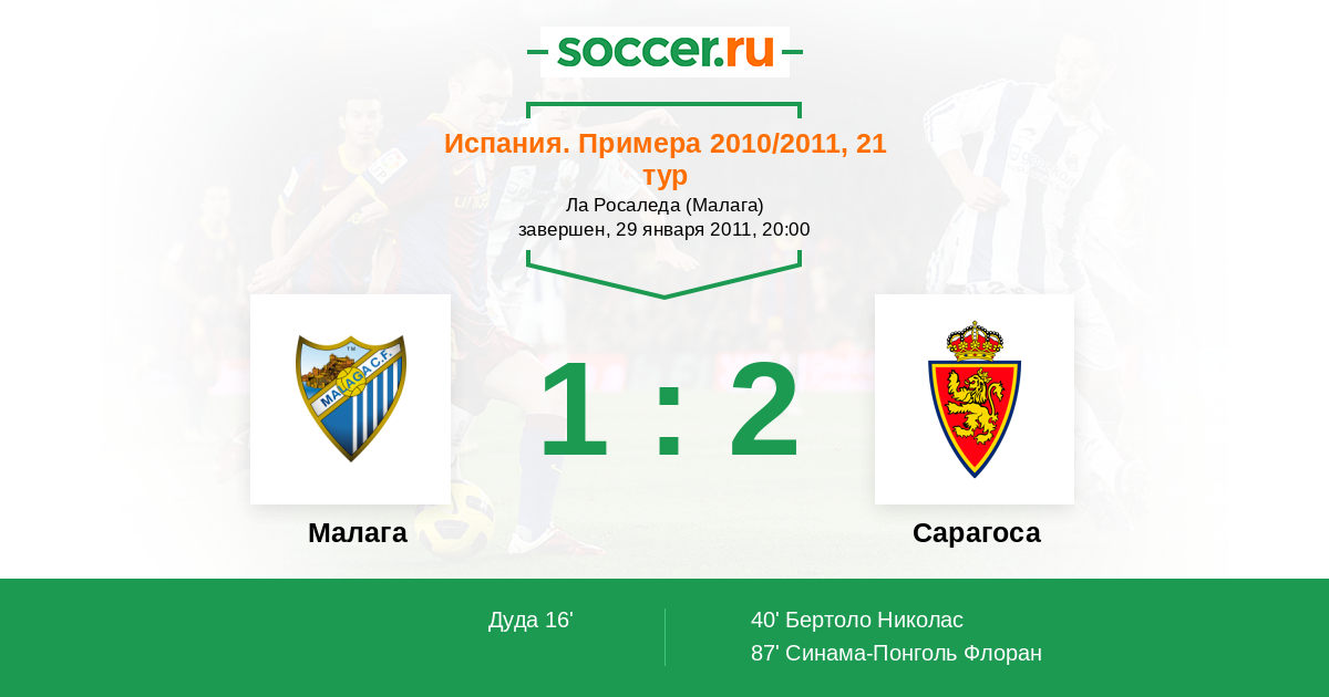 Малага - Сарагоса: обзор матча 29 января 2011