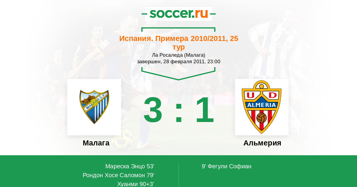 Малага - Альмерия: обзор матча 28 февраля 2011