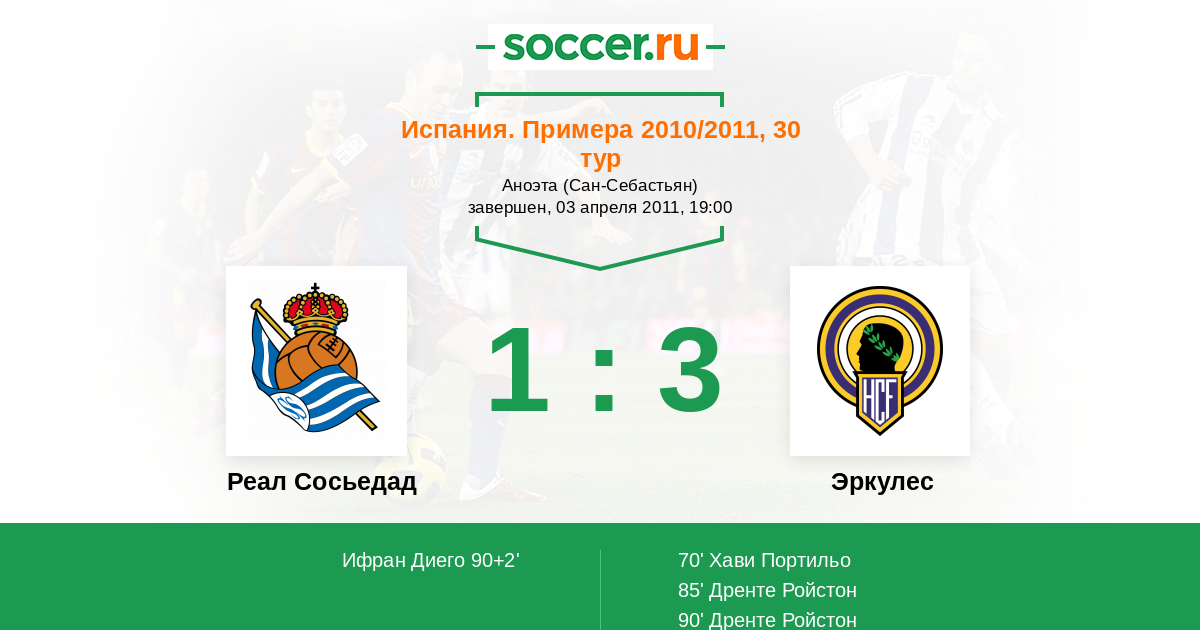 Реал Сосьедад - Эркулес: обзор матча 3 апреля 2011