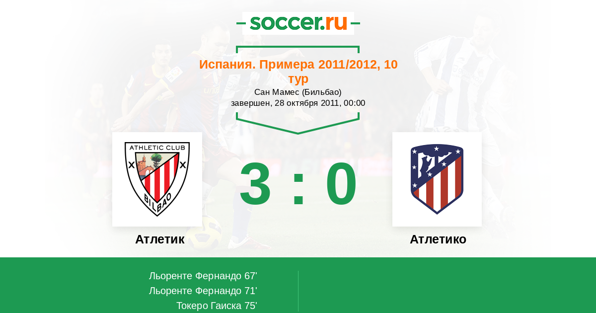Атлетик - Атлетико: обзор матча 28 октября 2011