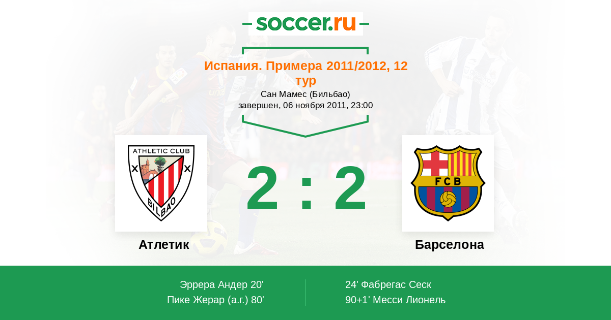 Атлетик - Барселона: обзор матча 6 ноября 2011