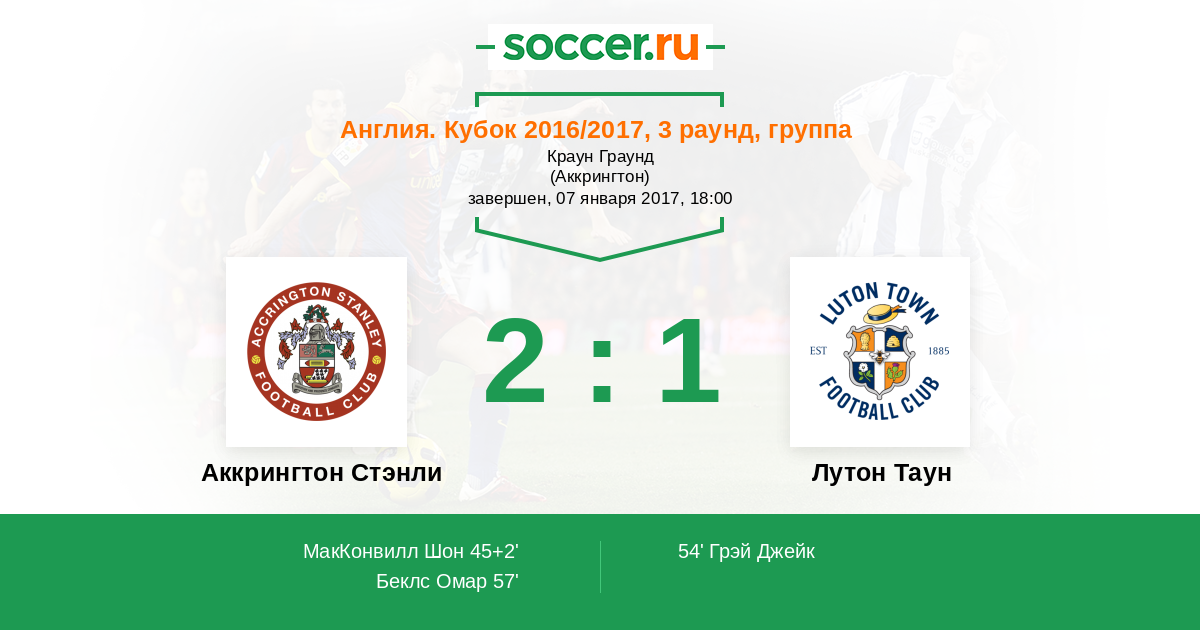 Аккрингтон Стэнли - Лутон Таун: обзор матча 7 января 2017