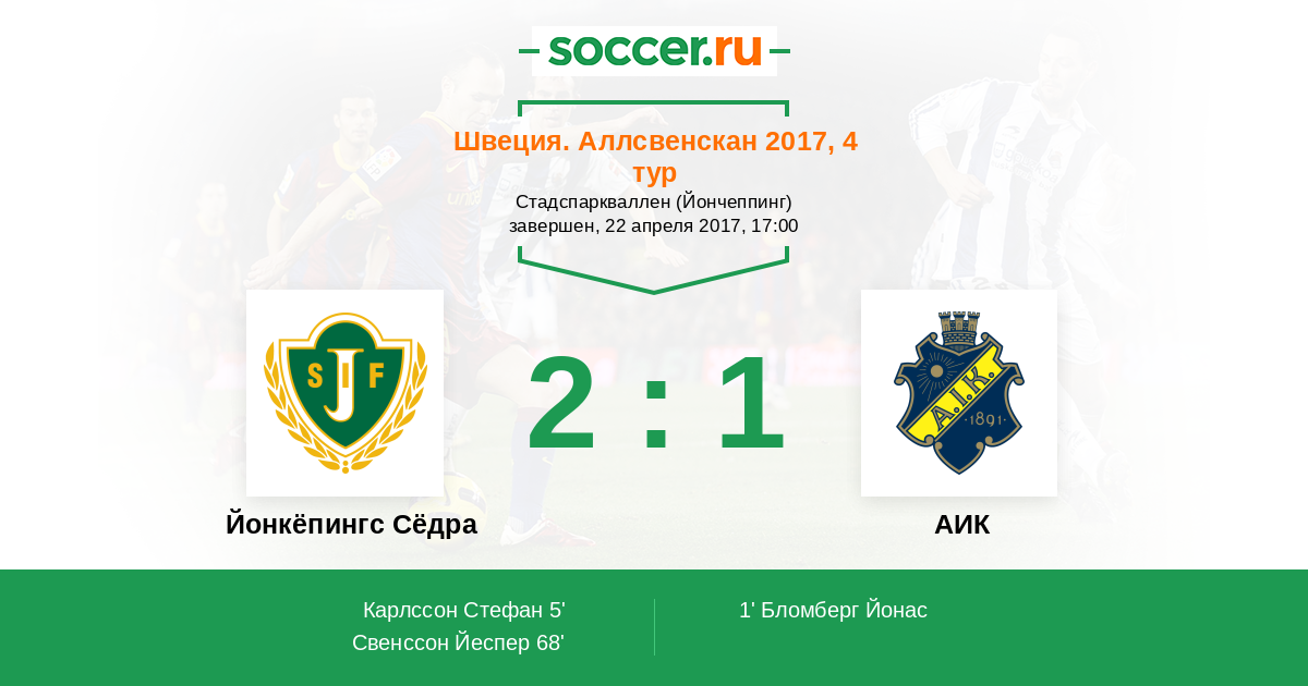 Йонкёпингс Сёдра - АИК: обзор матча 22 апреля 2017