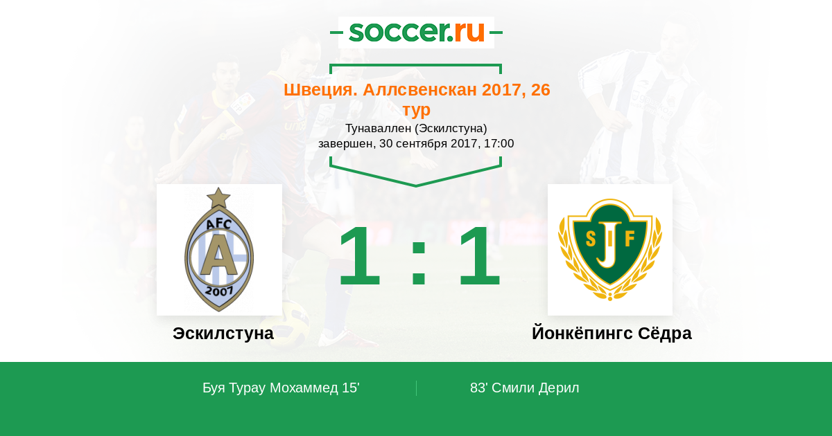 Эскилстуна - Йонкёпингс Сёдра: обзор матча 30 сентября 2017
