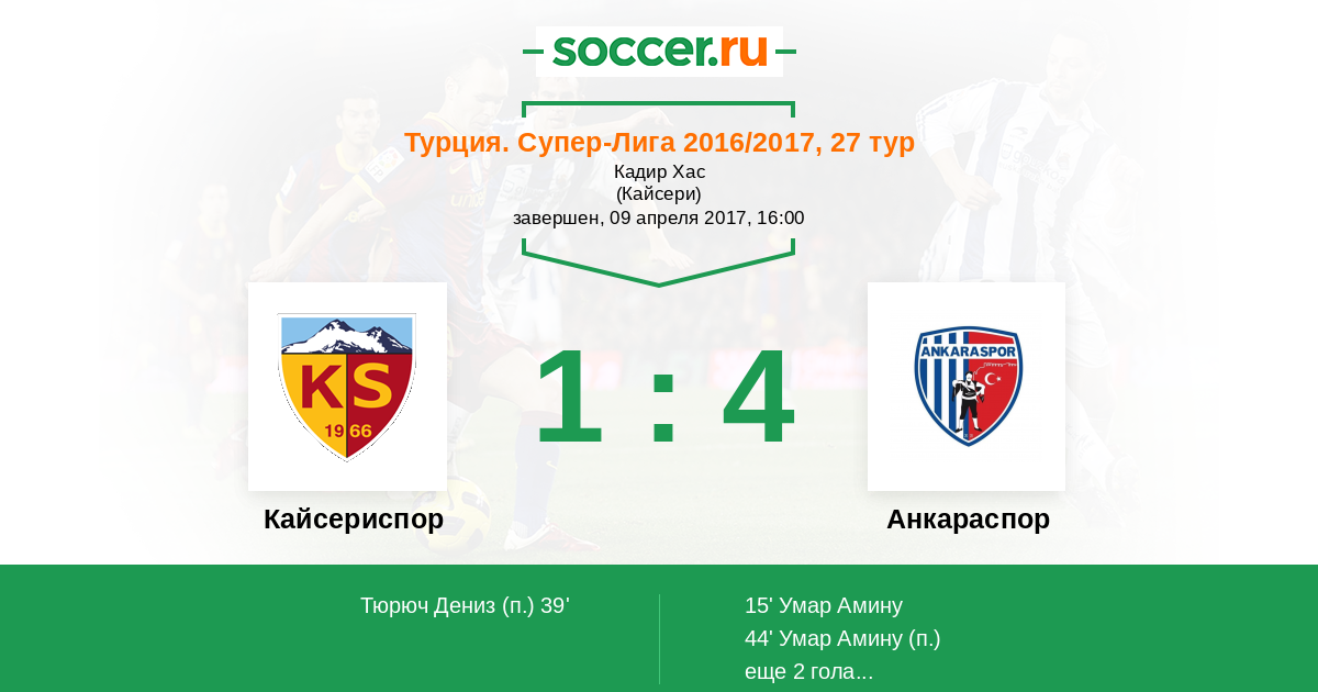 Кайсериспор - Османлыспор: обзор матча 9 апреля 2017